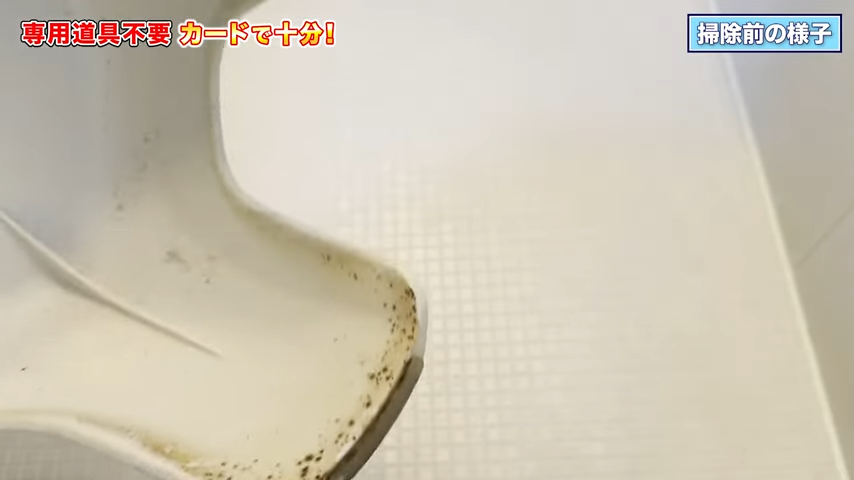 これまで、いろいろな洗剤を使ってバスチェアについた分厚い石けんカスを落としてきましたが、カードで削る方法は本当に楽だと感じています。