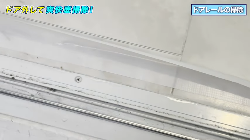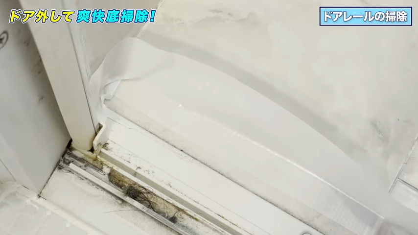 養生テープが大活躍!お風呂ドアを外してレールとドア底を洗ってみた