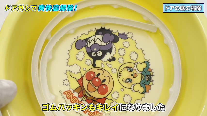 ドアを外して、さらにドアレールのゴムパッキンも外すと、じゃぶじゃぶ水洗いができるようになります。