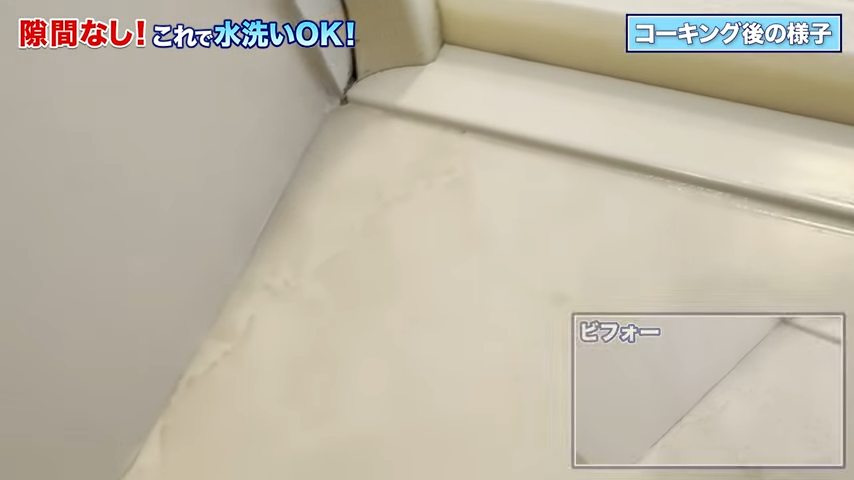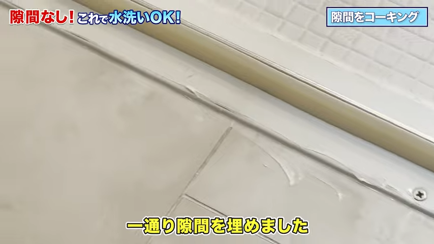 隙間があると水が溝に溜まったり、水が隙間からこぼれてしまいますからね。それを先に塞いでおこうという作戦です!ついでに、隙間にホコリや汚れが入り込みにくくなるのも嬉しいポイントだと思います。