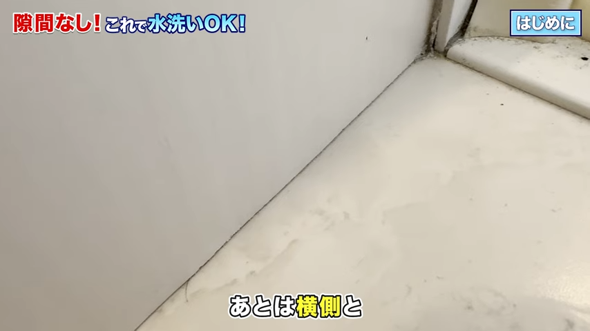 さらに脱衣所の横側にも、ほんの少しだけ隙間があるんです。大きな隙間ではないんですが、こういう小さいところに限って汚れが溜まるので、今回はまとめて埋めてしまおうと思います。