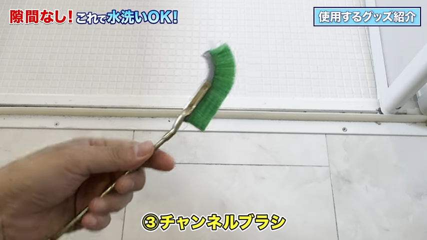 それからチャンネルブラシです。歯ブラシより毛先がしっかりしているので、ドアレールの溝に溜まったホコリをかき出すのにぴったりなんですよね。
