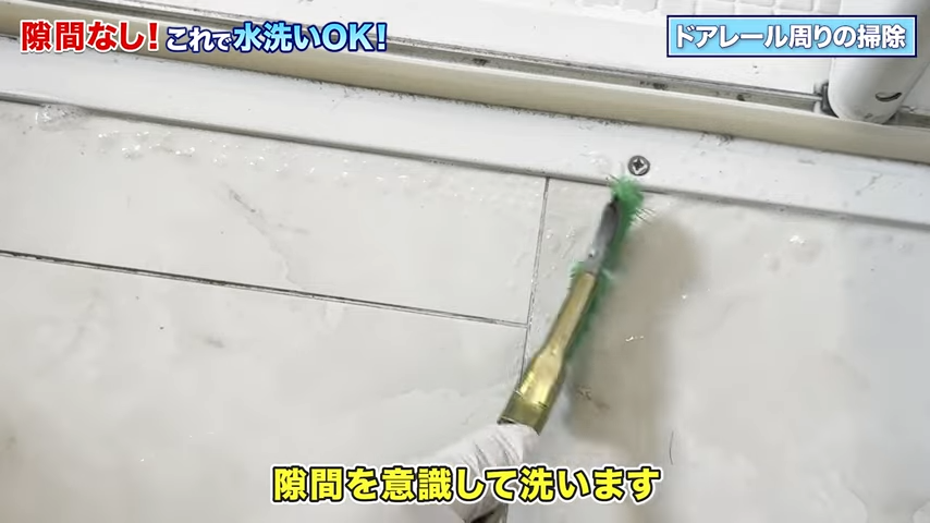 普段触れないドアの底やレールの隅まで、水洗いで一気に綺麗にする方法です。