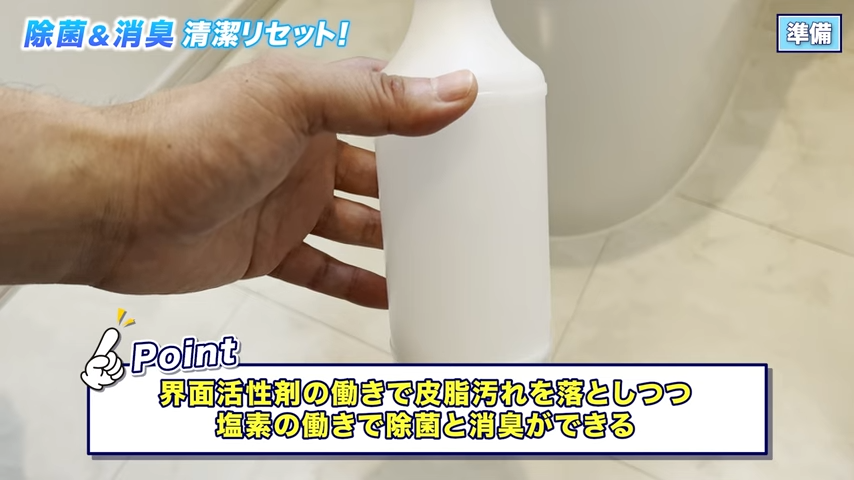 界面活性剤とアルカリの働きで皮脂汚れを落としながら、塩素の力でしっかり除菌と消臭ができる……というのがポイントなんです♪