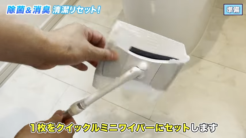 そのうち1枚を「クイックルミニワイパー」にセット。これで床や壁をラクに拭けるようになります!