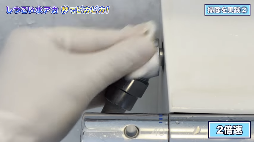 お風呂の蛇口に広がるウロコ状の水垢を、身近な道具で効率よく落とす掃除術です。