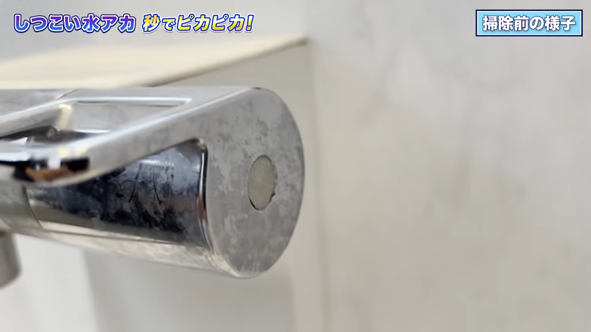 今回はガンコな水垢がどれくらい落ちるのか、実際に掃除していきますよ。