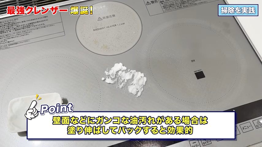 この形態ならIHのふちについた汚れや、壁面に残った油汚れにも使いやすいんです。薄く塗り広げて少し置くだけで、汚れにじわっと働きかけてくれるので、とても便利な使い方だと思います!