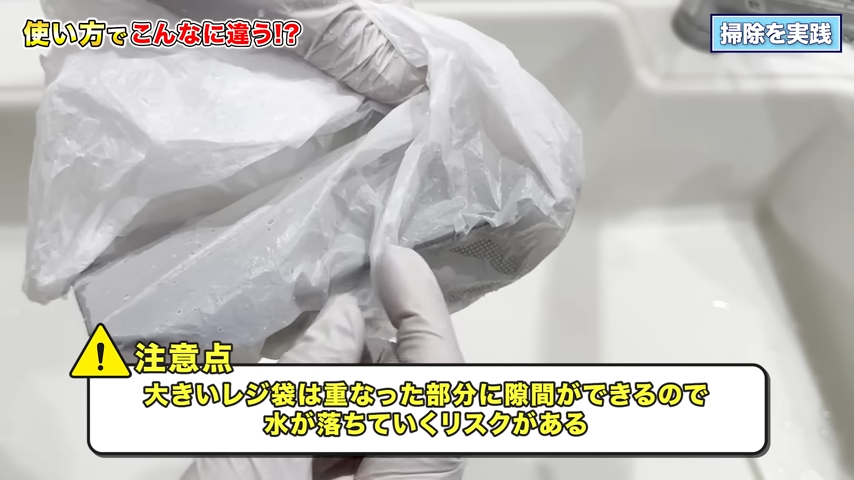 ただ、薄手のポリ袋を使うほうがシンクや排水口にぴたっとフィットしやすいこともあります。