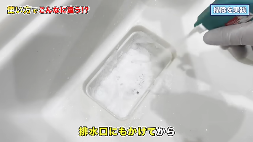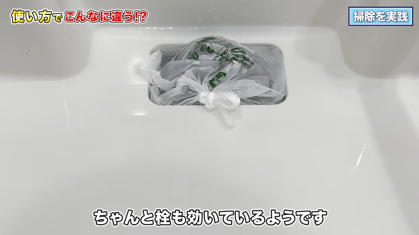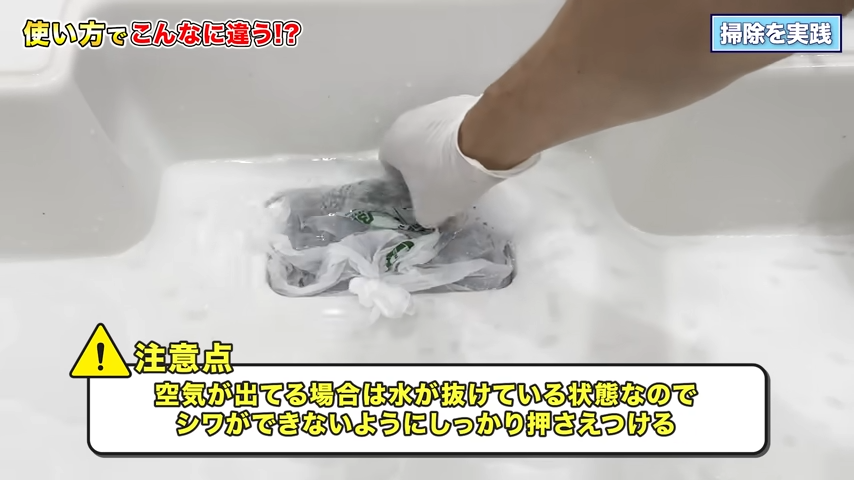 こうすることで排水パイプの上にフタができ、洗剤が排水パイプの中にしっかりとどまってくれるんです。