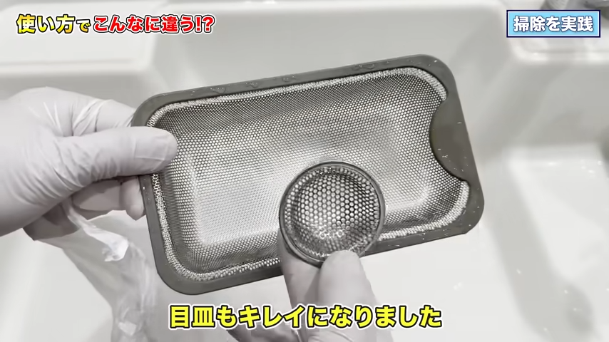 さらに今回のお掃除法なら、排水口まわりの汚れやシンクの底、そして目皿のぬめりまで一緒にスッキリ!