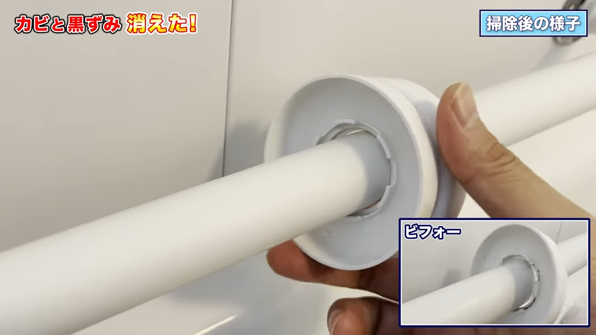 さらに、根元のカバーの裏側もご覧の通り!黒カビがなくなって、まるで新品のようです。