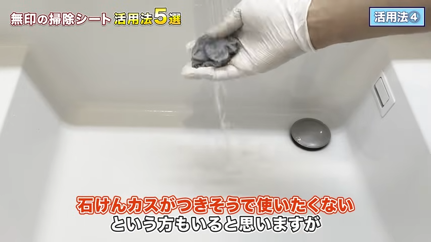 「水回りの汚れ用掃除シート」は、工夫次第で何回か使うことができます。