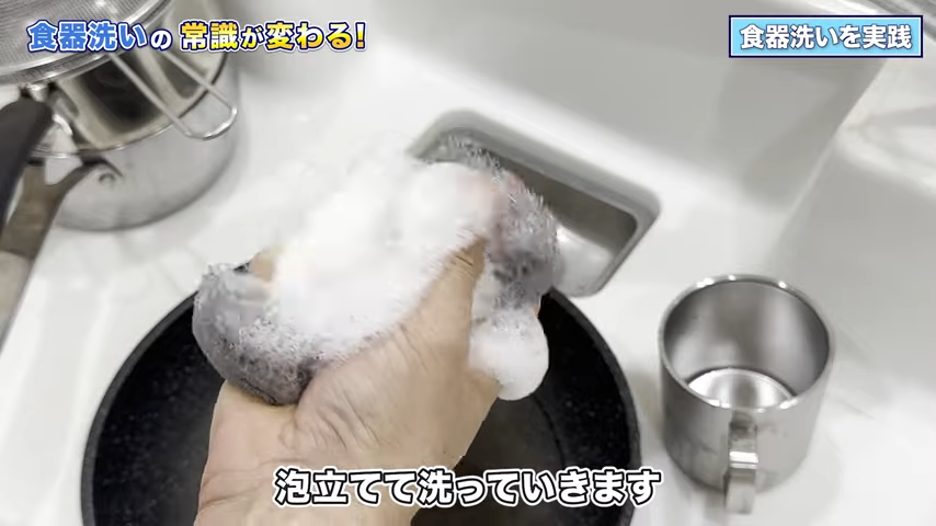 動画では実際に「器の泡」を使って、泡立ちやすすぎやすさを見せてくれているよ。石けんは油分が多いと泡立ちがとまることがあるけれど、事前にサッとふき取っておくといいみたい。うまく使いこなすならこういうポイントも抑えておきたいね。
