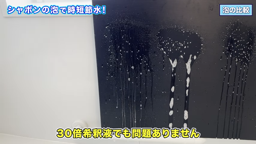 「30倍に薄めても本当に汚れが落ちるの?」というところも気になりますよね。実は「シャボンの泡」なら大丈夫なんです!