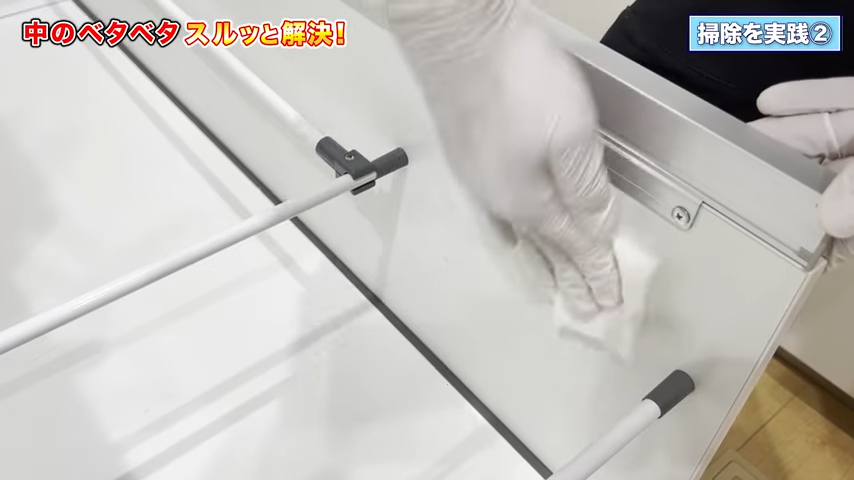キャビネット内側を「シャボンの泡」で拭き掃除