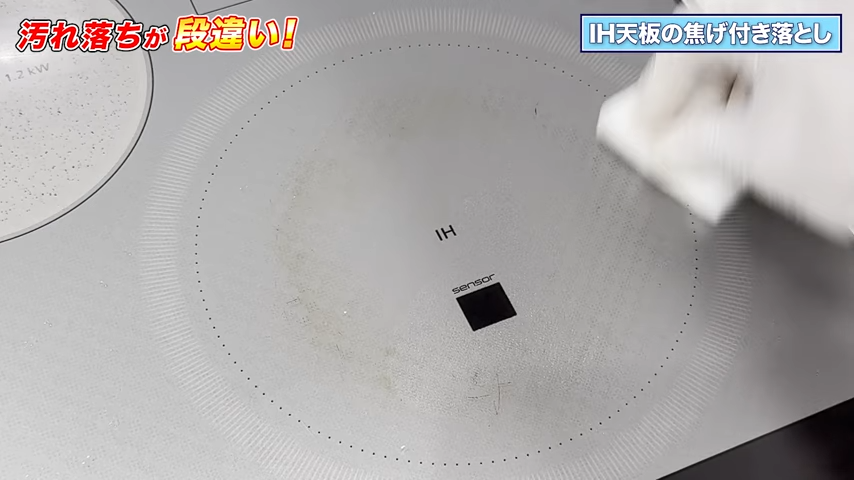 つぎはIH天板についたコゲ付き汚れを落としていきます。