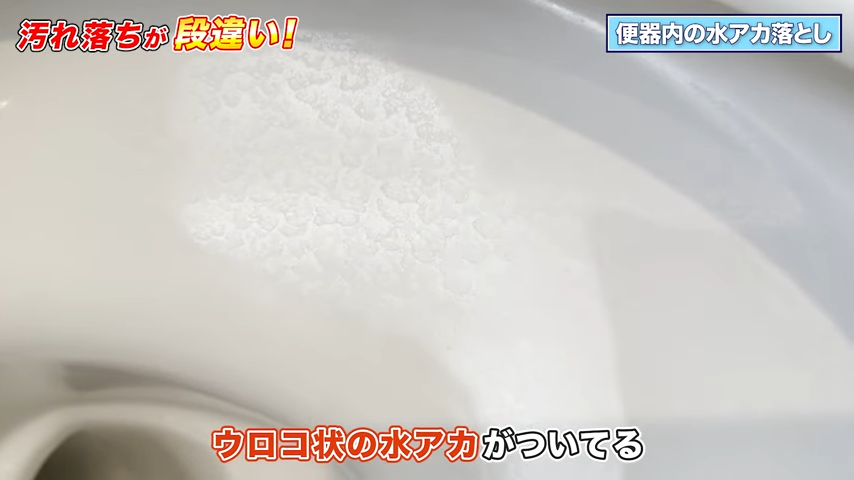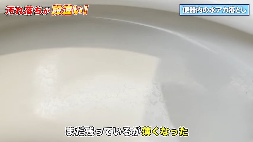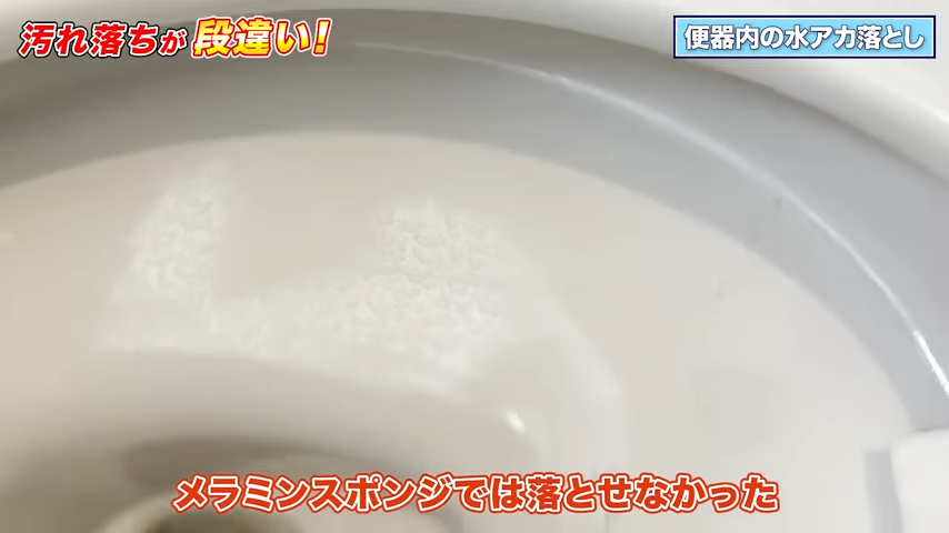 最後に、便器についたガンコな水垢も試してみました。これは残念ながら単体ではほとんど落ちませんでした。ただし「茂木和哉 極」と合わせ技で使うとよく落ちることがわかりましたので、試すなら順番に強さを上げていくのが良いと思います。傷が心配な方は、まずは重曹から始めてみてください〜!