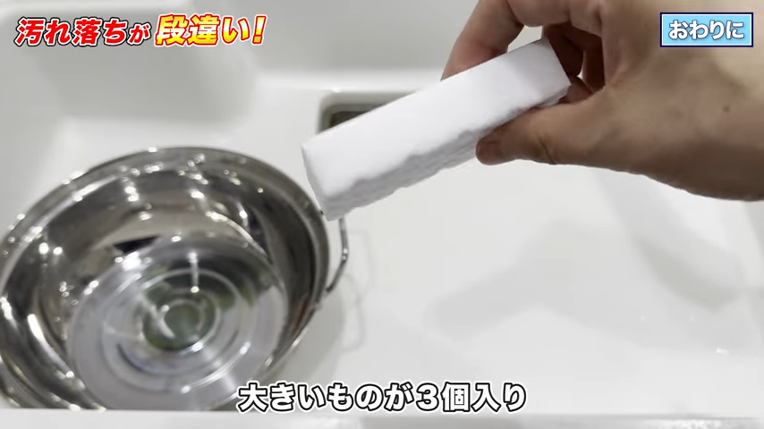 クレンザーなどを使うと、どうしても洗い流す手間が増えてしまいますが、メラミンスポンジなら乾拭きだけで仕上げられます!