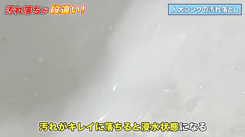 汚れが落ちると、表面が浸水状態になって、水が弾かれずに広がります。これは、汚れがしっかり取れている証拠です。