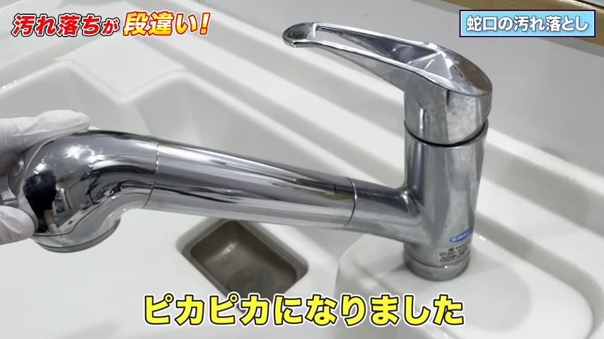 今回実際に使ってみて……まず、蛇口の掃除についてはかなり便利そうです。わが家の蛇口は樹脂メッキと鋳物のメッキ加工が混ざっていますが、どちらにも問題なく使えました。