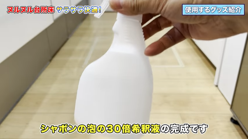 今回はこの「シャボンの泡」を使って、キッチンの床をすっきりお掃除していきます。