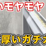 カーブのところは特に分厚いですね。黄色っぽい汚れも乗っていて、ここは一番手強そうです。