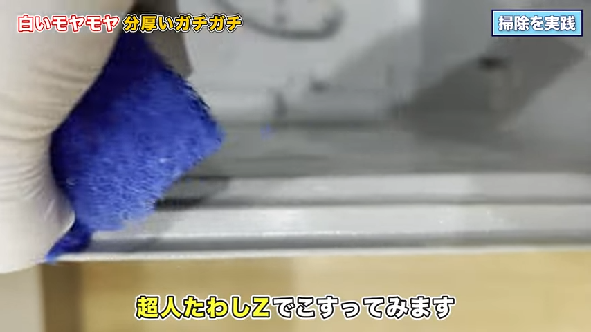 それとスポンジは研磨力のある「超人たわしZ」を使います。洗剤でゆるめて、落ちないところは研磨で攻める……という作戦でいきますね~。