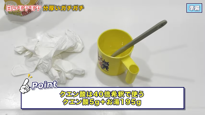 そして今回のメインは、酸性洗浄剤のクエン酸!