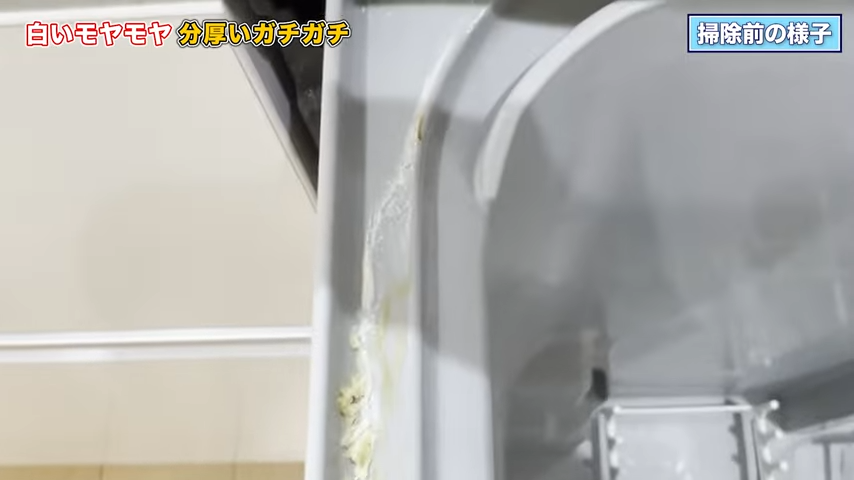 庫内の仕上げ:壁面の白い筋には、クエン酸希釈液をつけた「超人たわしZ」を使います。それでも落ちない場合はスポンジのみで慎重に研磨してください。