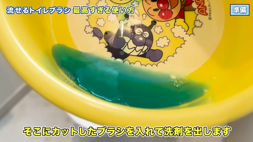 カットしたブラシは、洗面器に入れた水に浸して溶かして拭き掃除用の洗浄液を作ろう。