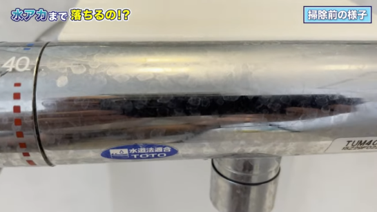 ご覧のとおり……お風呂の蛇口には水垢がついていますね。